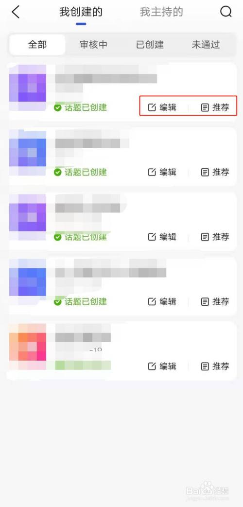 然后就可以浏览自己创建的话题,进行编辑和推荐设置。