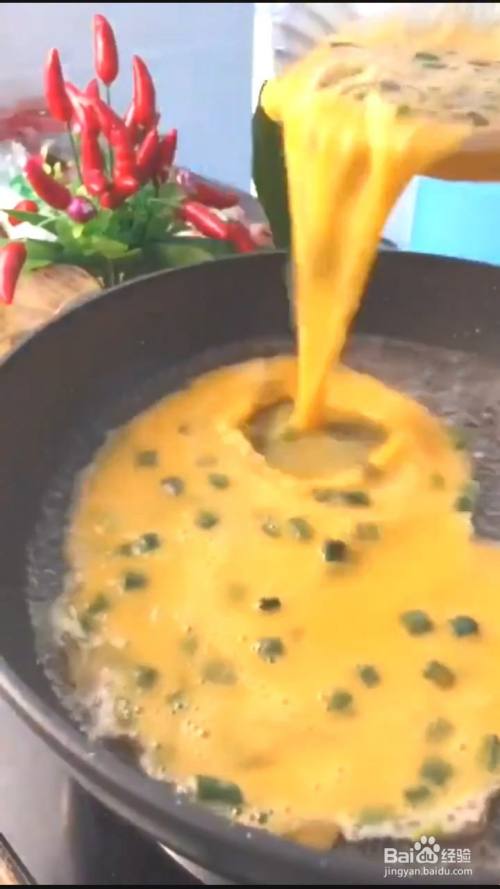 第一个步骤完成了,接下来第二个步骤是起锅烧水。水开后倒入蛋液。小火翻炒至定型