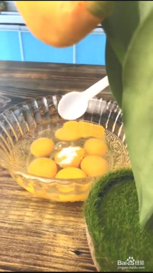 第一个步骤是容器中放入6个鸡蛋,加入盐,葱花,搅拌均匀