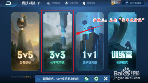 进入“竞技对战”选项界面以后,点击界面上的“长平攻防战”模式。
