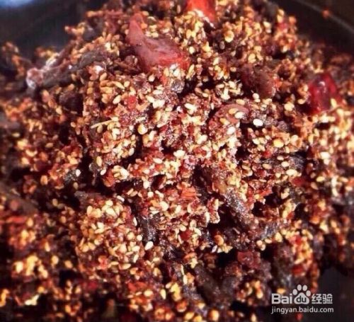小火倒入干辣椒段、白芝麻、香料、海椒面炒2分钟。