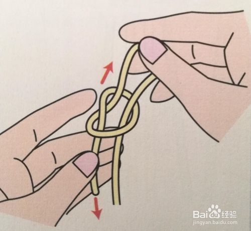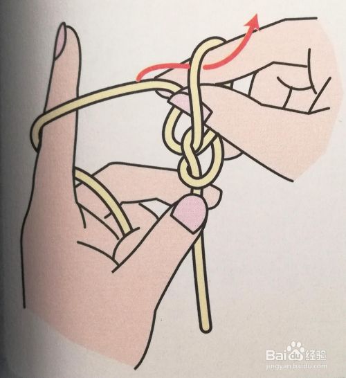 将左手移开,拉动编织绳两端和环,并将其拉紧。