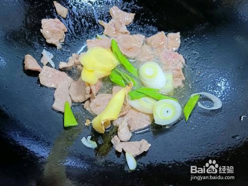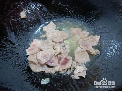 炒锅入油,放入五花肉炒至变色