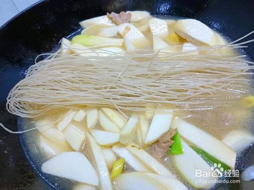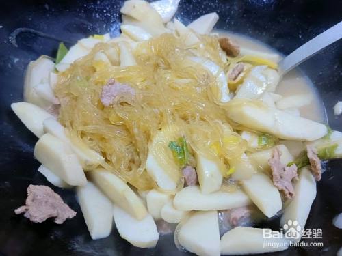 加入开水没过芋头块,放入粉条