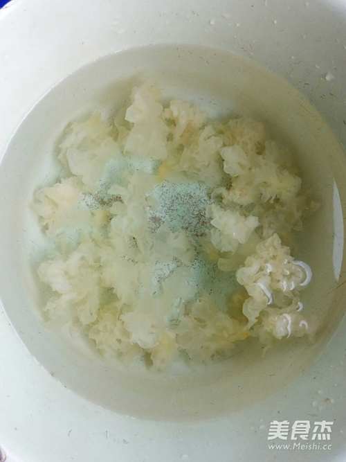 锅中加入水,根据每个人喝的量加入。水开放入银耳炖。