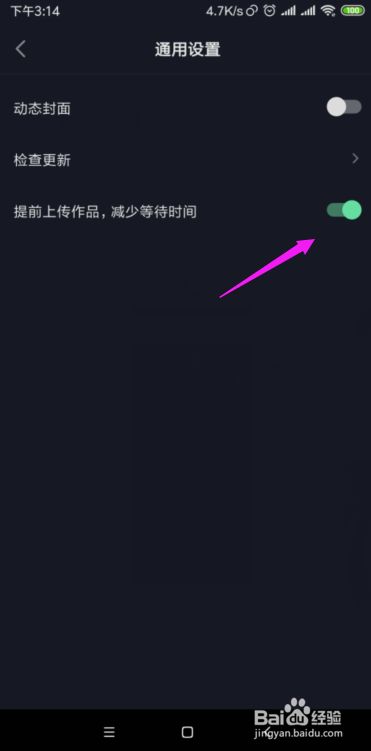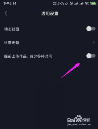 【通用设置】小页面里,【提前上传作品,减少等待时间】没开着,如图。