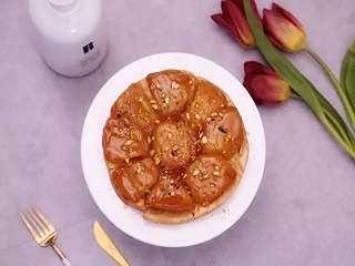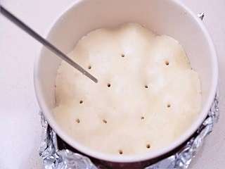 低筋面粉、玉米淀粉、蜂蜜和椰子油混合,揉匀,放入模具中,压实,苹果铺在模具内,倒入浓稠的果胶液,盖上挞皮,压一下,扎上小孔,放入烤箱中烘烤。