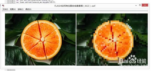 在FLASH中,使用代码,可以很方便的制作一些特有的效果,这里使用代码将正常的图片转换为像素画风格。