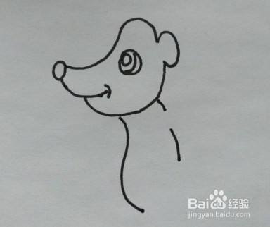 画刺猬的头部轮廓,再画刺猬的耳朵和鼻子,如图所示。