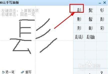 第六,您在写的同时,右侧就出现了您可能需要的字,当右侧出现这个字的时候,您要点击选择。