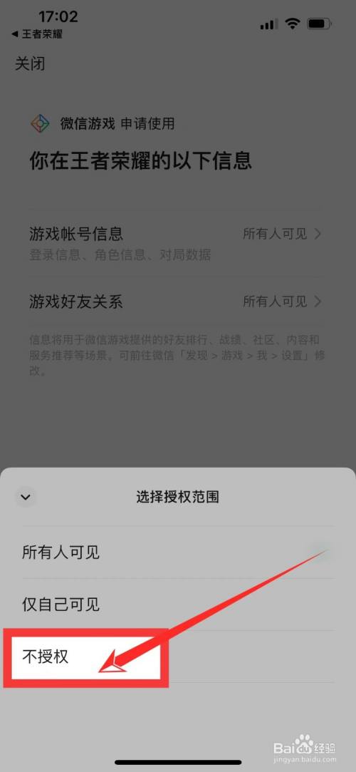 在弹出的选项中点击【不授权】,这样微信好友就看不见自己的游戏信息了。