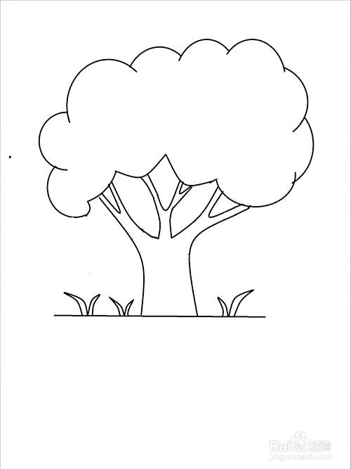 最后在大树的下面画出几颗小草,这样大树就画好了,是不是很简单呢。