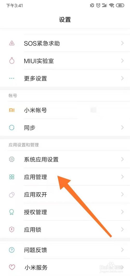进入设置界面后,我们下滑页面,在底部的”应用设置和管理“中点击”应用管理”;