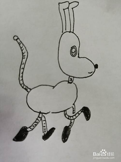 第七步,最后把可爱的小狗狗的长长翘翘尾巴画完整。简笔画可爱的小狗狗就画好了。