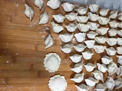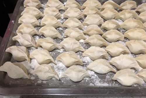 6取饺子皮,放陷包好。这个量刚好包了100只饺子,外加两饺子盒子。