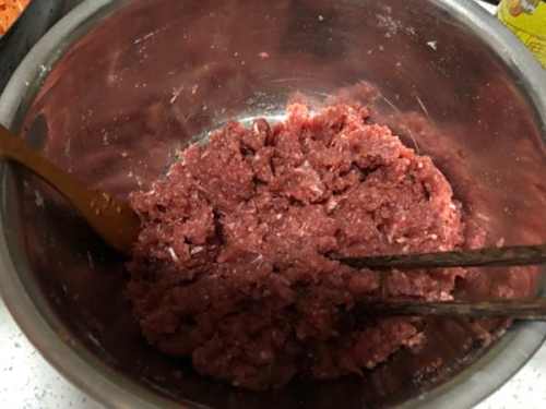1牛肉的上脑部分做馅最合适,嫰又肥瘦相间。这次家里只有牛里脊了,所以我就用了里脊。里脊比较瘦,酌情多加点熟油吧。