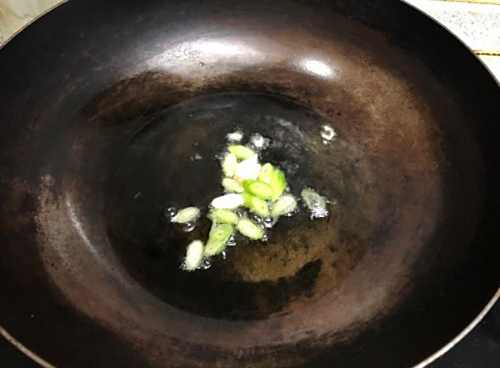 3胡萝卜搅成末儿。锅里放油,加葱花,热油。