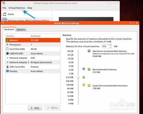 单击virtual machine 打开虚拟机的设置界面。