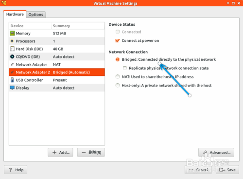 我们先设置为桥接。