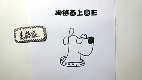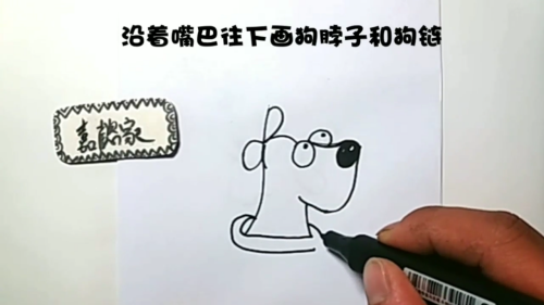 沿着嘴巴往下画狗脖子和狗链。