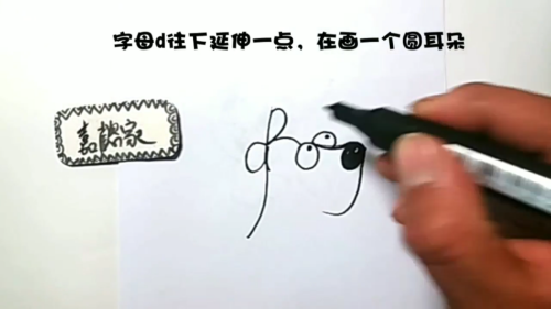 字母d往下延伸一点,在画一个圆耳朵。