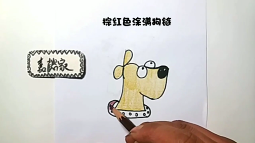 黄色彩铅涂满小狗身体。