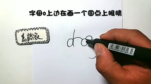 字母o上边在画一个圆点上眼睛。