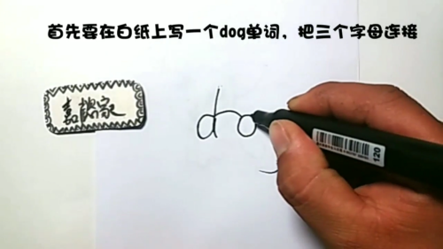 在白纸上写一个dog单词,把三个单词连接。