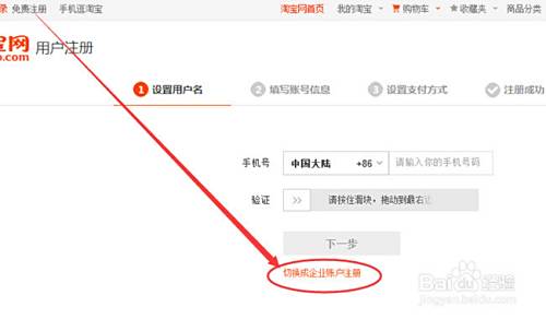 然后会出现,如下图的选择,变成企业用户注册了。可是我们也没有企业资质,所以没有办法注册,所以小编就说说如何使用邮箱注册支付宝来绑定个人淘宝小号。