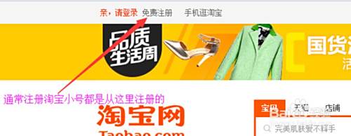 通常我们注册淘宝账号的方法是,到淘宝首页——免费注册,然后按步骤就可以成功注册个人淘宝号;如图