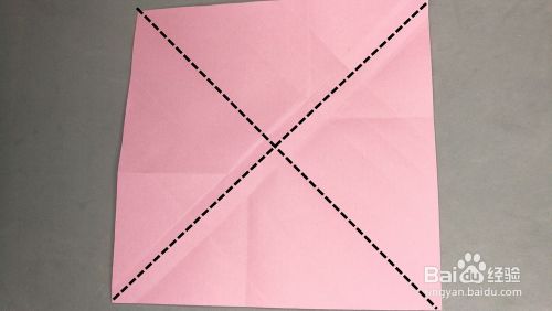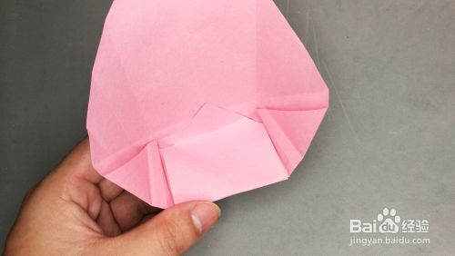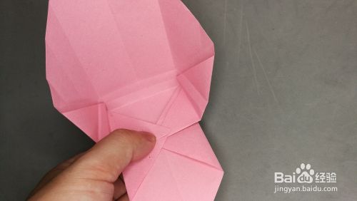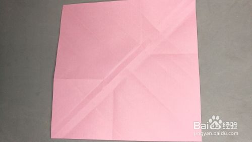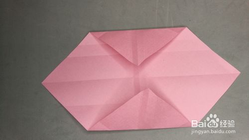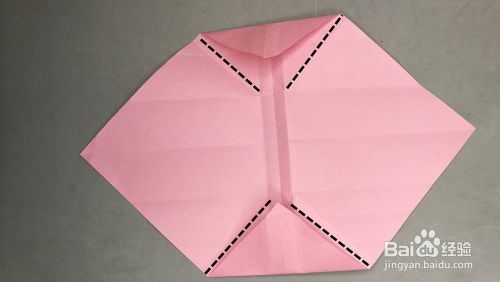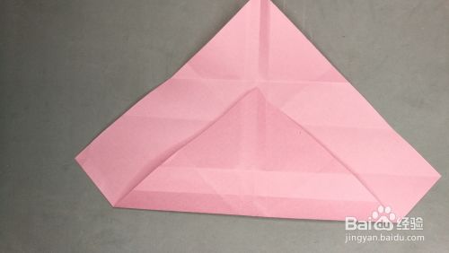 下角与第三步的上边折痕线对齐折叠,上角与第三步的下边折痕线对齐折叠。