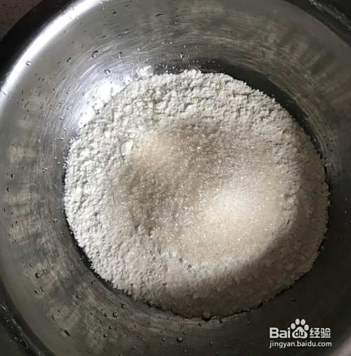 第一步,准备一个干净的大盆,把面粉倒入盆中,加入少许的白砂糖和适量的酵母粉。
