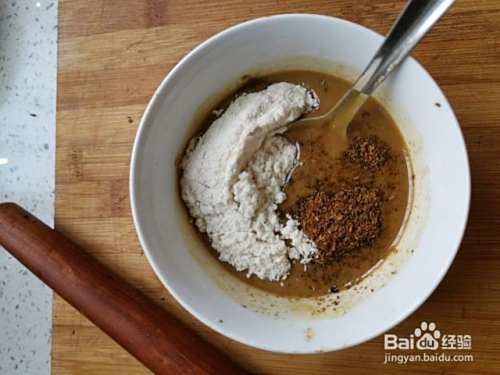 第三步,发酵的这段时间里,我们可以调制麻酱:把适量的芝麻酱放入碗中,用香油调稀,加入少许的花椒粉和茴香粉,一些炒熟的面粉,搅拌均匀。