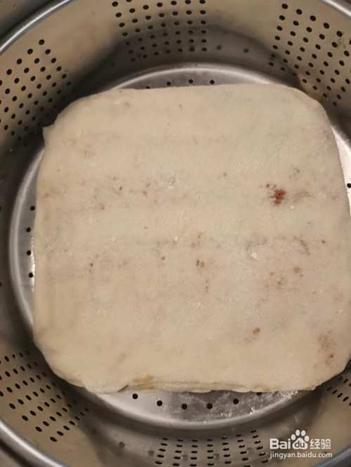 第八步,大火烧开后转中小火蒸20分钟左右,关火再焖5分钟,揭开盖子,凉一凉,切成小块,就可以享受美味的千层麻酱饼了。