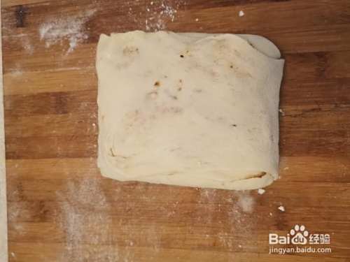 第五步,把面皮像叠被子一样叠起来,把边封好。