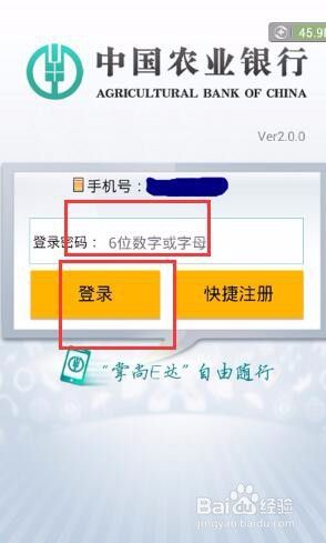 打开农行掌上银行,输入登录登录,点击“登录”按钮