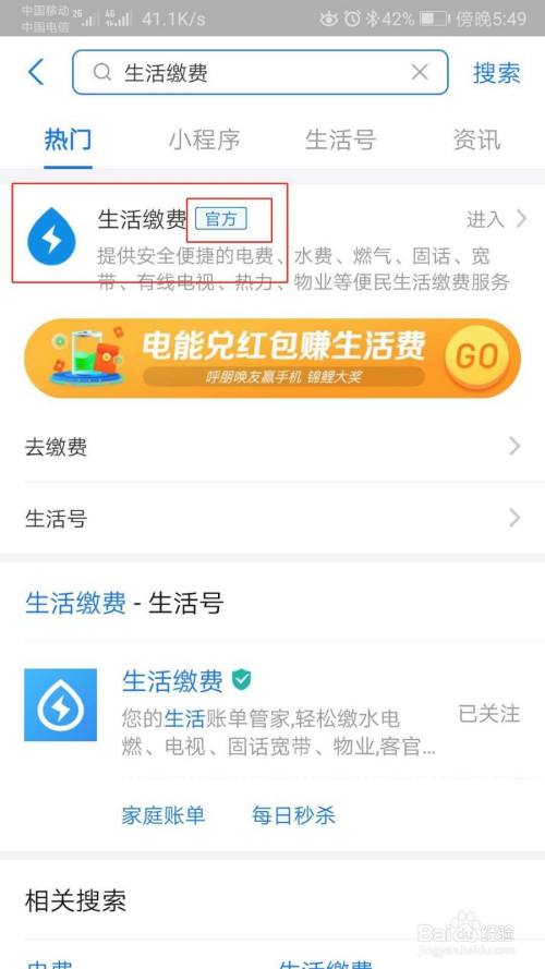 点击【生活缴费】(ps:选择带有官方标记的选项)
