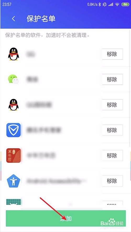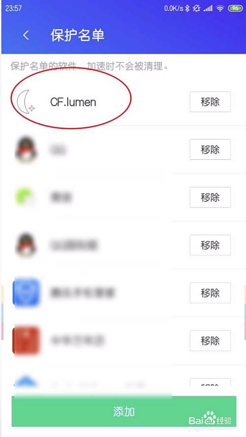 点击加速保护名单,点击添加。
