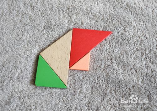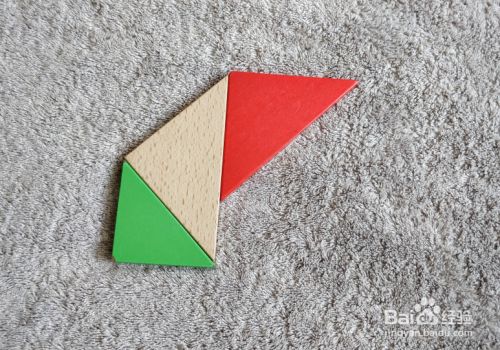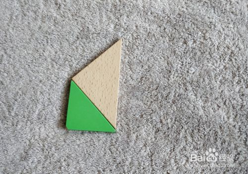将绿色三角形直角水平居于左下,放在本色三角形的左下挨着,右顶点挨着本色下顶点。