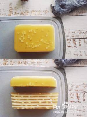 蒸好取出,彻底放凉后再脱模切块。注意!一定一定要彻底放凉后再切块哦,不然会粘,就不好切也不好看啦。