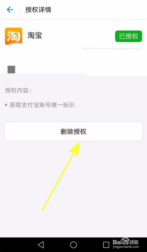 在页面中显示我们已经授权的产品和设备,如果我们想删除哪一个授权,就点击一下,以淘宝为例,点击淘宝