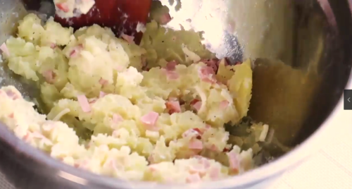 加入研磨黑胡椒、丘比沙拉酱、马苏里拉芝士碎。