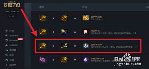本篇经验和大家分享一下,怎么合成挑战者纹章。