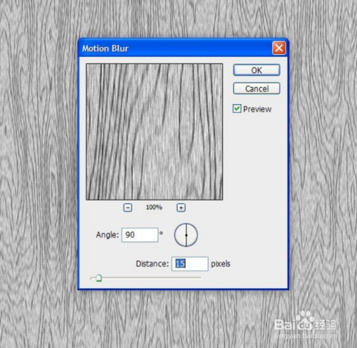 打开滤镜>模糊>动感模糊,角度90°,距离 15 px。