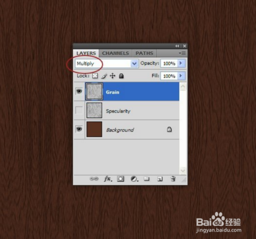 将“Grian”的图层混合模式改变为正片叠底,然后就完成制作木纹纹理啦。