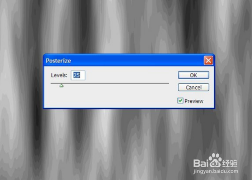 在图像里找到色调分离,给图像制作纹理~图形>调整>色调分离,色阶参数设置为 25,然后就可以看见木质纹理被很好的分离出来了。