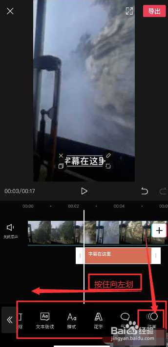 第二步:点击“添加到项目”,选择“新建文本”,给视频加字幕,找到“动画”图标并点击,向左滑选择特效,并确定。