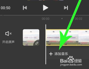 首先在快影上打开剪辑界面,然后点击“+添加音乐”。