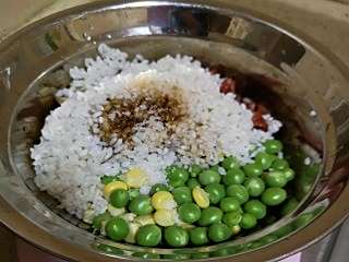 倒入糯米和调料。