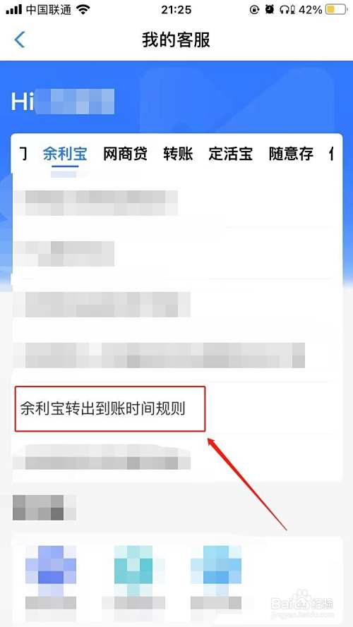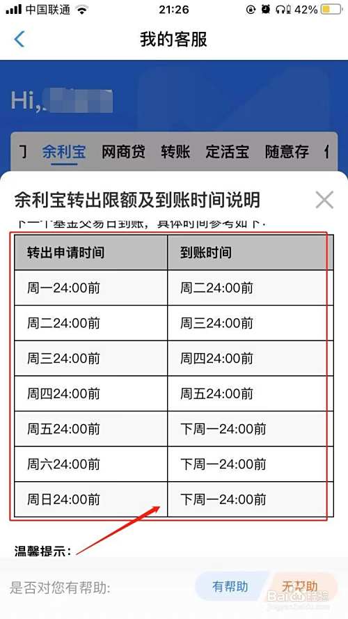 选择上方的余利宝类目之后,点击下方的“余利宝转出到账时间规则”